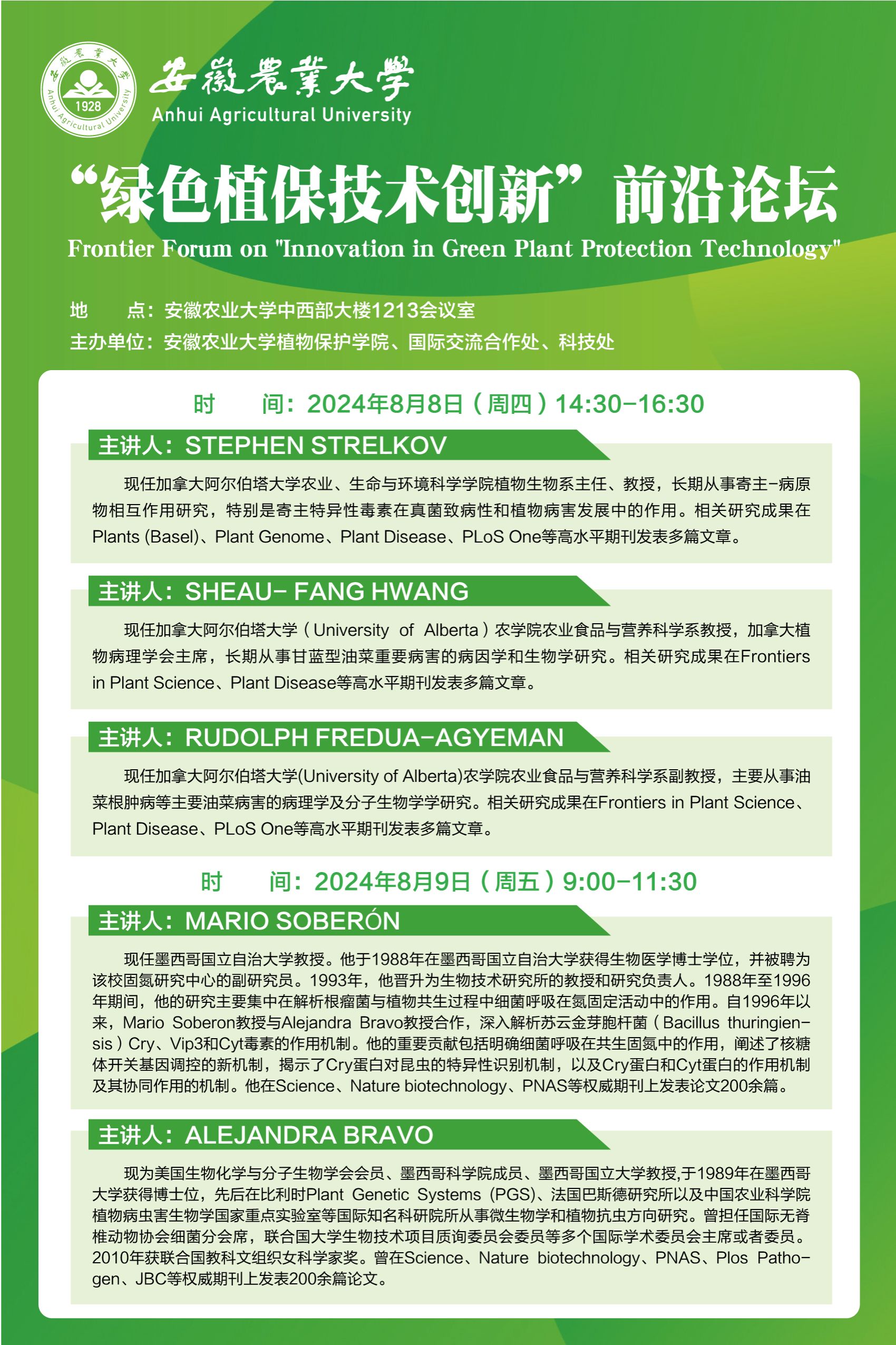 8月8日-9日“绿色植保技术创新”前沿论坛
